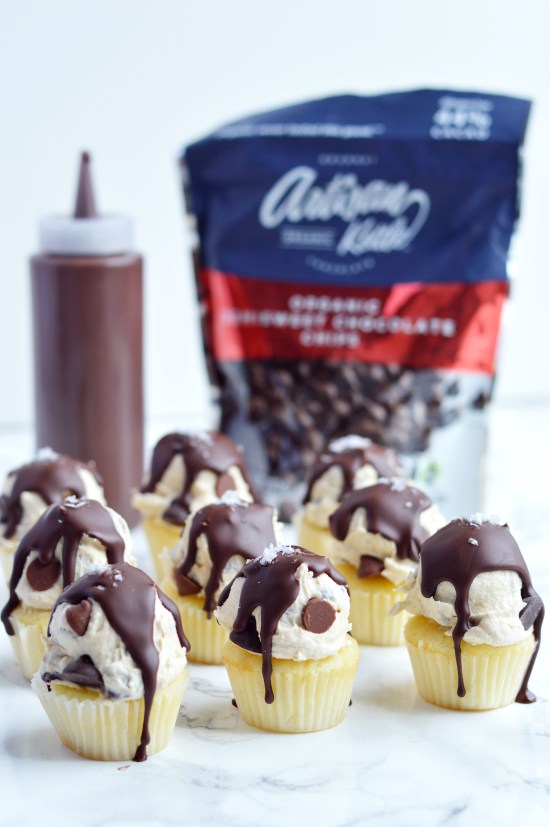 8. Fold in chocolate chips. Either scoop on top of mini cupcakes or store in fridge for easy snacking.