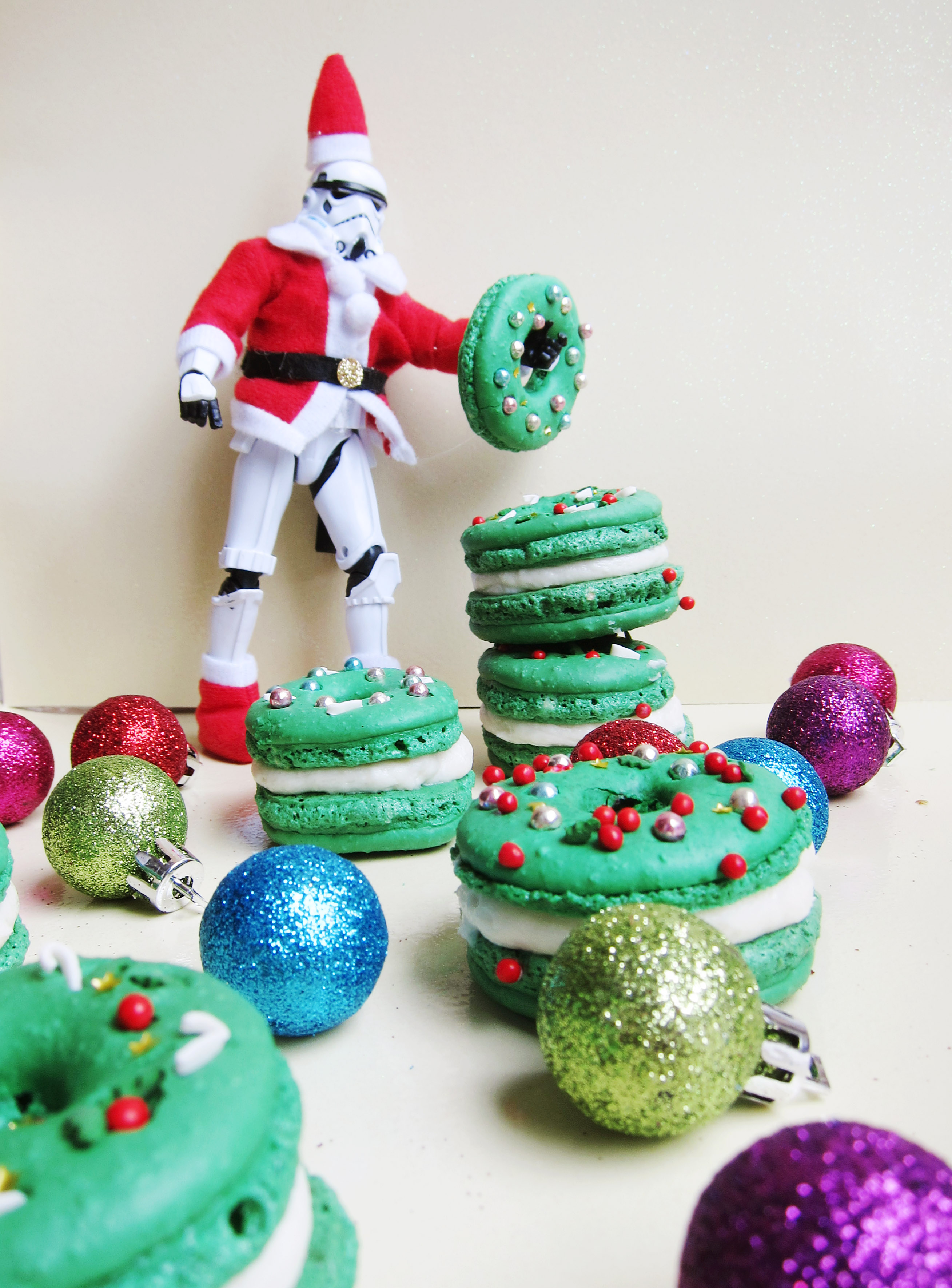 Am I the only person that thinks that Christmas snuck upon us this year? I feel like I was waiting forever for Thanksgiving and then BAM! Christmas is right around the corner. (Did anyone else think of this Friends’ scene when they read BAM?) I’ve been dreaming of these macarons since December started and I finally had a chance to bake them earlier this week.