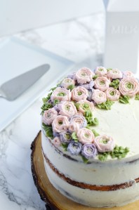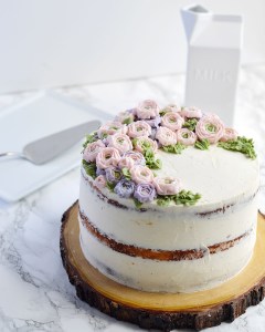 - Scrape off the extra frosting with a cake scraper for a smooth finish.