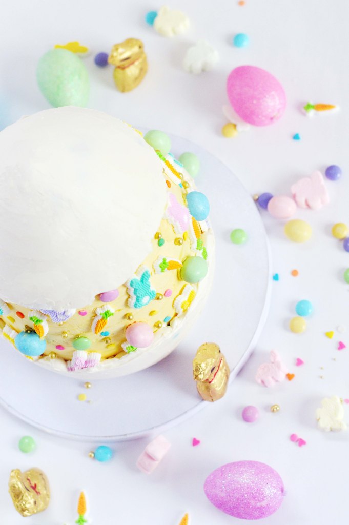And yes, I had to shape the cake into an egg shape. The top of the cake is actually a molded cake ball out of all the cut scraps of the cake, so you don’t waste any of the delicious bits. Unlike a traditional cake that has more structure, this was not a clean cut project. You try your best to make it into an egg shape and stop cutting if you think you are shaving off too much. You can always add a bit more frosting to cover up your mistakes. But shaping the cake is an optional task. All of this is. If you want to just make the cake without decoration? That’s cool. If you want to decorate the cake without shaping it? That’s awesome. If you just want to bake the liquid cheesecake filling and eat it with a spoon? I caution you that it’s addictive and please, save me some. The point is, do what brings you the most joy and go with it. Happy Easter.