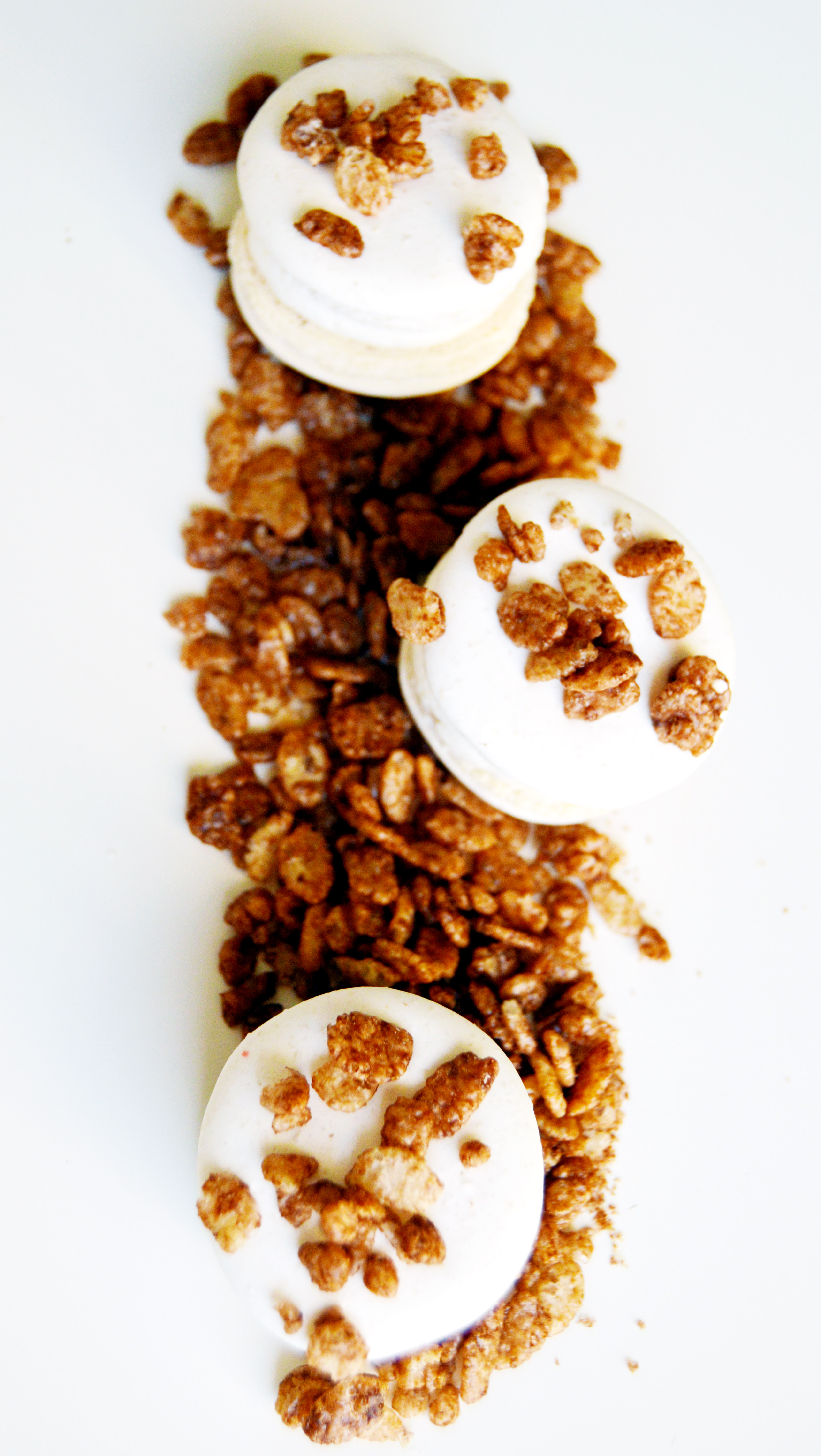 I know, I know. Frosted Flake macarons? It sounds odd, but it’s really good! I even brought them out with me yesterday and someone noted that it might’ve been the best macaron he ever had.